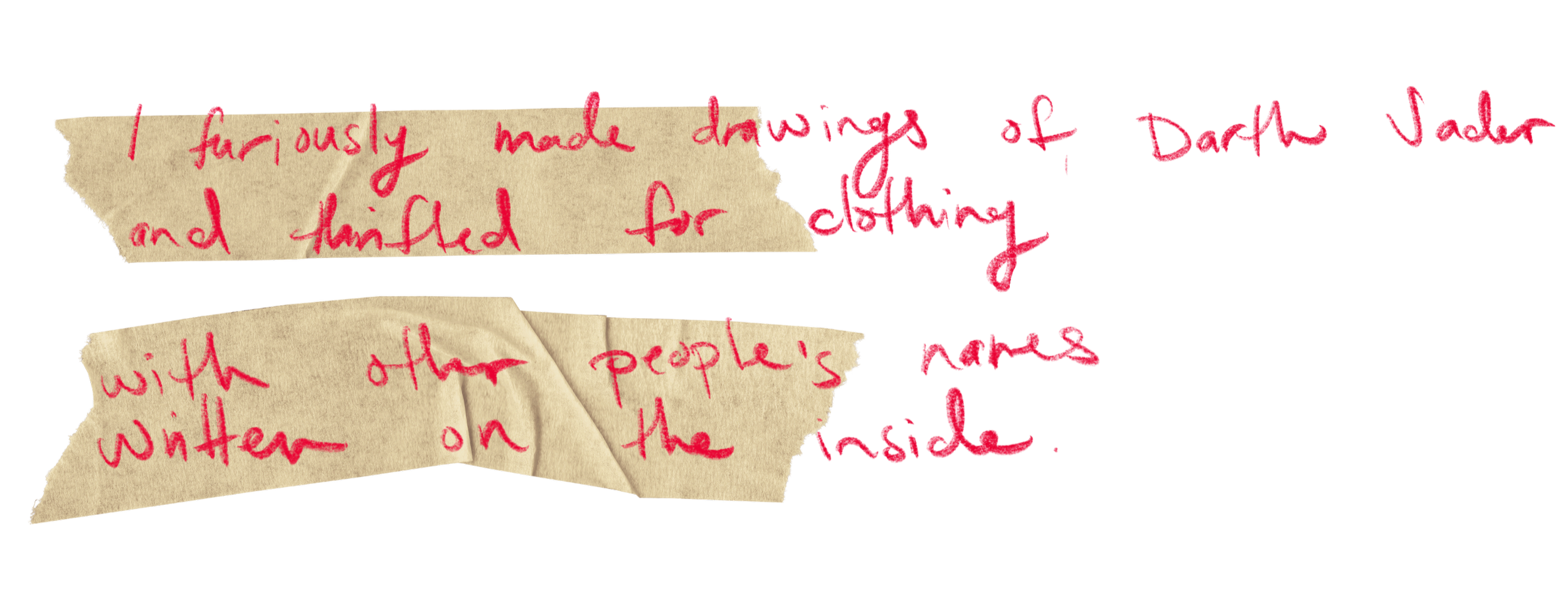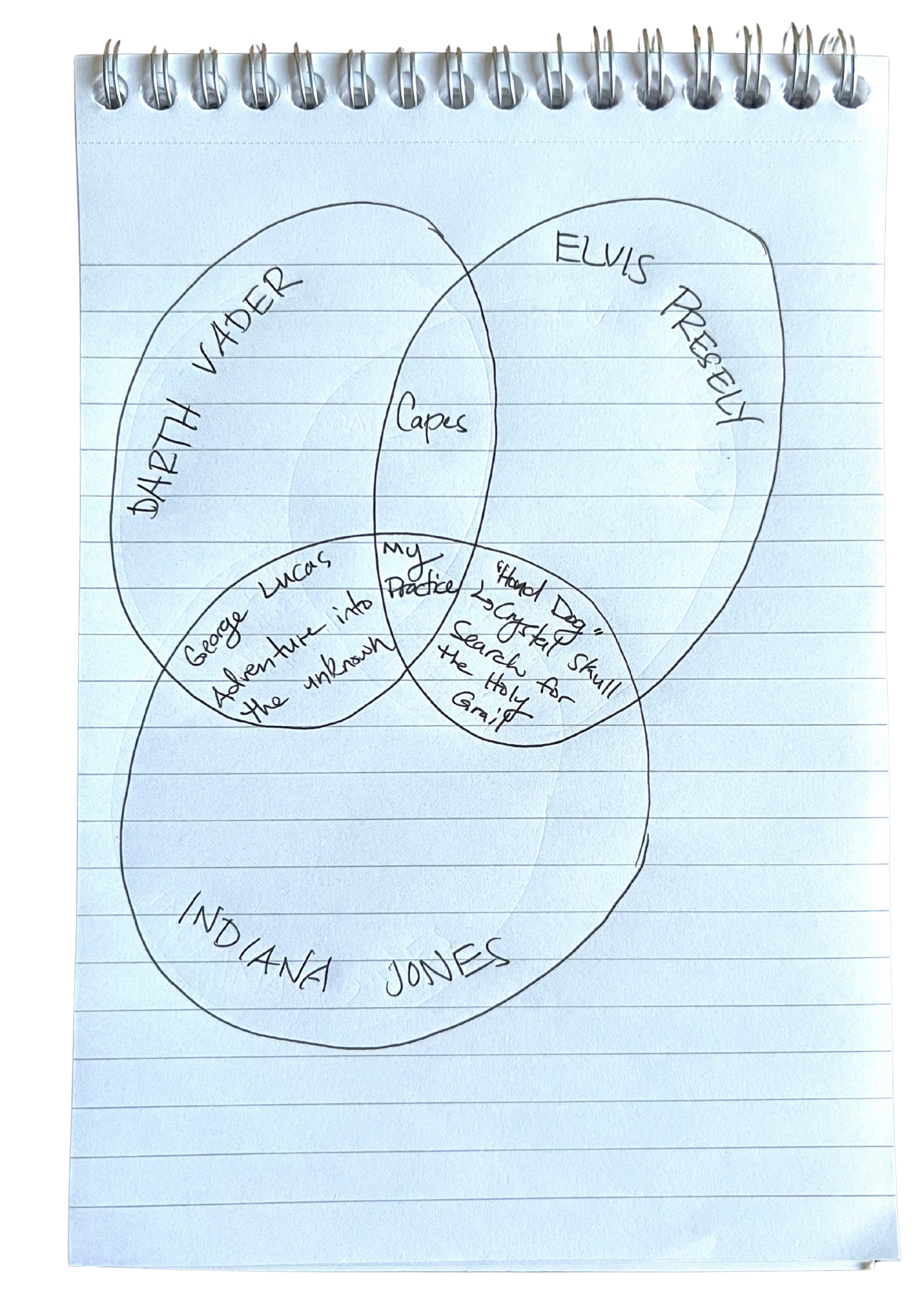 The next year I saw two films that gave me prospects into the future instead of the past; Star Wars and Indiana Jones. I was astounded by the idea of exploring other galaxies, finding a wookie to accompany me on my journey. Maybe I would be an astronomer. I would search for life, patterns and the secrets of the universe; solve the three body problem, find Darth Vader and convince him to join my quest. I loved how small Star Wars made me feel. That I was just a speck inside something expanding with its own plans, but that there could be someone lightyears away also struggling with the concept of death and putting their pants on one leg at a time. I watched Indiana Jones and decided maybe I could be an archeologist, uncover the secrets of the universe by looking into the past for clues; digging for old wedding rings and ancient notebooks. I was now becoming an artist bookended between Star Wars and Indiana Jones.